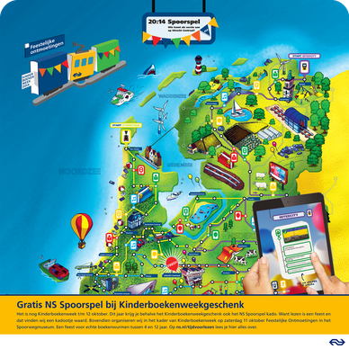 Met die gedachte heb ik in samenwerking met het CPNB en de NS, Het NS Spoorspel gemaakt. Een echte spoorkaart van Nederland gecombineerd met een app die je vragen stelt en precies bijhoudt